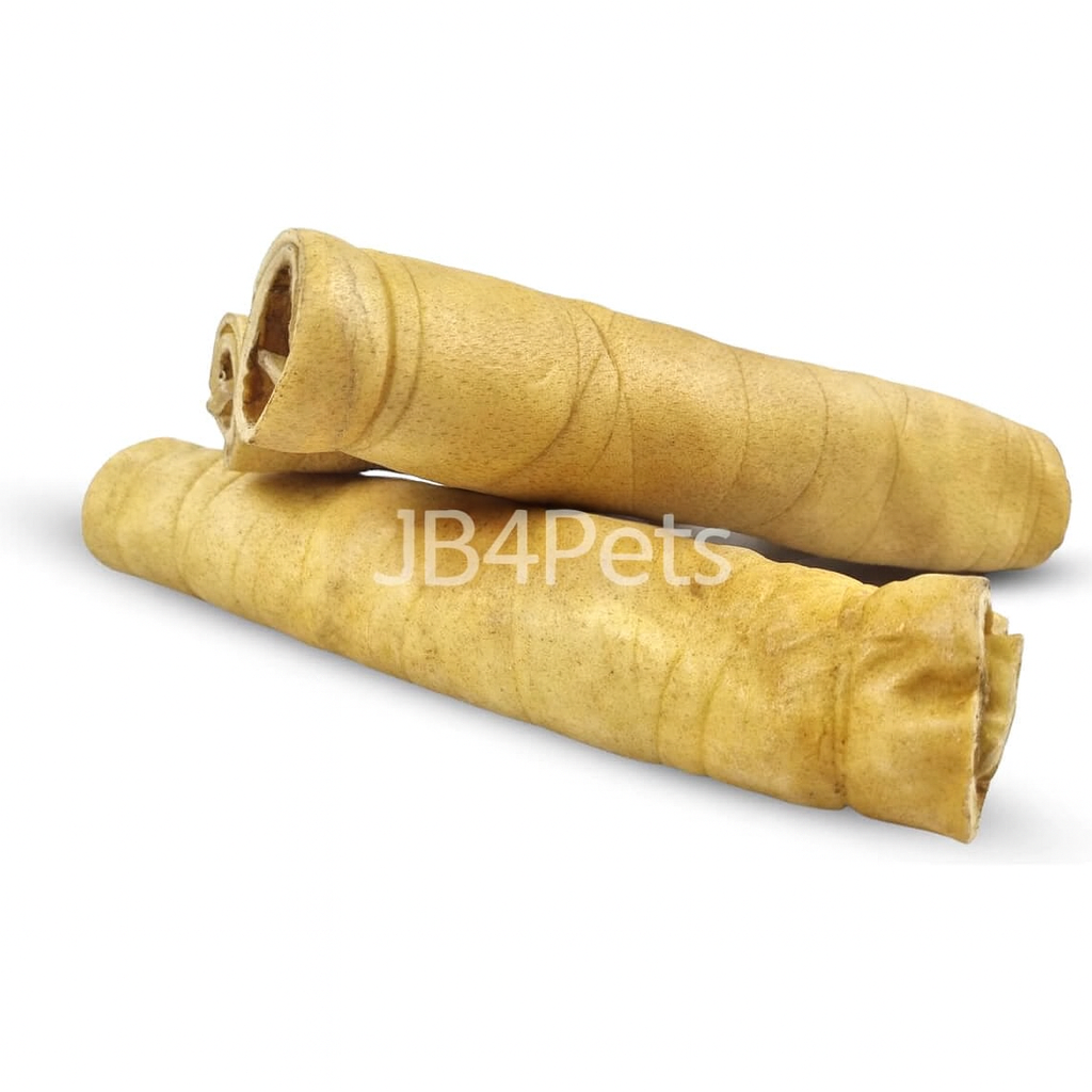 Onze JB⁴PETS Runderkophuid Rol is een extra stevige, opgerolde kauwrol gemaakt van 100% runderkophuid. Met een lengte van ca. 27 cm en een diameter van 3,5 cm biedt deze rol langdurig kauwplezier, zelfs voor krachtige kauwers.